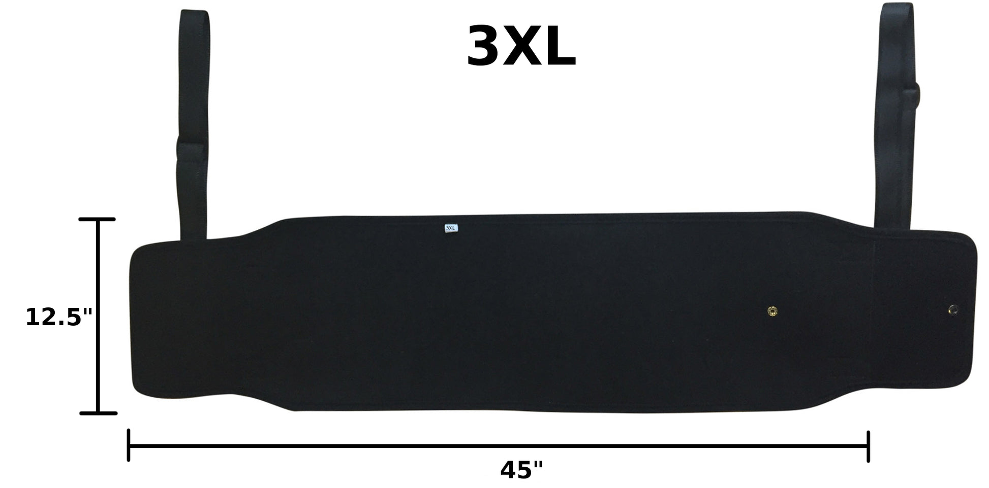 - 3XL: 45" x 12.5" and is appropriate for dogs weighing 140 pounds and up